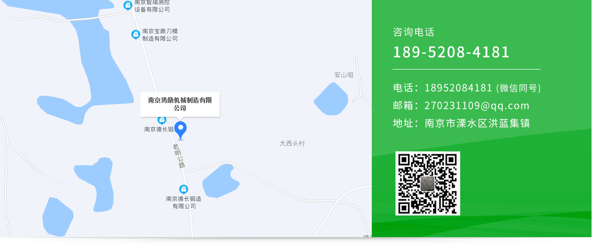 - 南京鴻鼎機械制造有限公司是一家生產制造綜合型技術企業(yè)。坐落于南京市溧水區(qū)洪藍集鎮,處在長三角經濟圈和南京一小時都市圈內,30公里內可達南京祿口國際機場。地理位置優(yōu)越、環(huán)境優(yōu)美、交通便利。公司始終堅持”以信譽求發(fā)展、以質量求生存"的發(fā)展理念,...